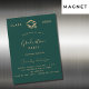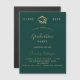 A modern, elegant graduation party invitation magnet. A green background, golden text. The blue colour is uneven. Personalize and add a name, year and details.
