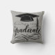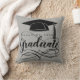 Graduation Grey Black Script Typography Grad Cap Throw Pillow