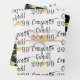 Set of 3 coordinating graduation wrapping paper sheets featuring a repeating pattern of CONGRATS GRAD and CLASS YEAR (editable year) in a hand printed brush stroke typography and a faux metallic gold foil graduation cap or mortarboard in black and white. ASSISTANCE: For help with design modification or personalization, colour change, transferring the design to another product or if you would like coordinating items, contact the designer BEFORE ORDERING via the Zazzle Chat MESSAGE tab below or email makeitaboutyoustore@gmail.com.