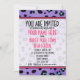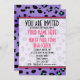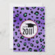 A graduation invitation featuring a purple leopard print background on front and back. Pink and black text and pink trim. Opposite side features "Class of 2011" text inside pink circle with black graduation hat illustration.