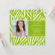 Start off you event right with our beautiful lime green and white Zebra stripe print photo graduation invitation. Perfect graduation invitation for a high school graduation or college graduation. Just fill in your information add your photo and you're all set to go. Visit our shop at www.celebrateitgraduations.com for a large assortment of graduation invitations!