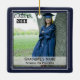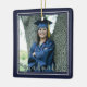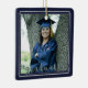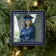 This commemorative keepsake ceramic ornament features two photos of the graduate and includes their name, school and graduation year. Makes a thoughtful gift for any graduate. NOTE: The NAVY BLUE background colour can be changed by clicking on the CUSTOMIZE tab. The silver faux glitter border accentuates most all school colours. The font style/colour/size/placement can be changed as well.