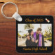 Graduation keychain with personalized photo, name, and year. Black front and yellow back with cap and diploma. Class of 2025!