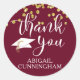 Gold confetti and handwritten script THANK YOU and the graduate's name in white against a changeable maroon background colour. Use as graduation party favour stickers or thank you seals on stationery envelopes. Contact the designer via Zazzle Chat or makeitaboutyoustore@gmail.com if you'd like this design modified, on another product or would like coordinating items.