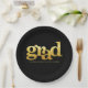 Be proud, rejoice and showcase this milestone of your favourite grad! Celebrate with this bold, stunning, simple, modern, custom paper plate. Bold, graphic, faux gold foil typography overlays a black background. Personalize with your grad’s name and class year. Your choice of 2 sizes: 7” or 9”. Matching announcements, address labels, cap toppers, fans, napkins and other graduation goodies are also available in this trendy and modern collection. Guaranteed to add stylish fun to their special party!