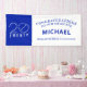Modern typography design for THE CLASS OF TWENTY TWENTY (2020) with CONGRATULATIONS TO OUR GRADUATE and personalized with name and school in an editable royal blue and white colour scheme. COLOR CHANGE: Edit the background colour to change the royal blue block of colour and text colour to coordinate with school or party theme colours by clicking on the CUSTOMIZE FURTHER tab. Contact the designer if you'd like this design modified, on another product or would like complementary items.