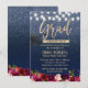 Modern Burgundy Red Floral Navy Blue Glitter Graduation Party Invitations.