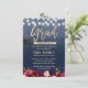 Graduation Modern Navy Blue Burgundy Red Floral Invitation