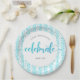 “Celebrate.” Be proud, rejoice and showcase this milestone of your favourite grad! Celebrate with this stunning, modern, sparkly turquoise glitter dots and typography script against a baby turquoise blue and white striped background, paper plate for an event to remember. Personalize the custom text with your grad’s name and class year. Your choice of 2 sizes: 7” or 9”. Guaranteed to add stylish fun to her special party! Matching invites, napkins and other graduation goodies are also available in this trendy and special collection.
