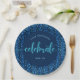 “Celebrate.” Be proud, rejoice and showcase this milestone of your favourite grad! Celebrate with this stunning, modern, sparkly turquoise glitter dots and typography script against a dark navy blue striped background, paper plate for an event to remember. Personalize the custom text with your grad’s name and class year. Your choice of 2 sizes: 7” or 9”. Guaranteed to add stylish fun to her special party! Matching invites, napkins and other graduation goodies are also available in this trendy and special collection.