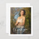Moderne, élégant et simple remise de diplômes merci carte modèle pour vos invités, votre famille et vos amis qui sont venus pour soutenir, et célébrer votre graduation avec vous et vous douche avec des cadeaux et des cadeaux. Ajoutez votre message personnalisé et votre photo à l'envers ou changez complètement la typographie et la mise en page pour en créer un d'un merci carte photo d'un grade 2025