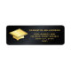 Ces étiquettes d'adresse de retour en noir et or uniques comportent du texte modèle pour customiser avec votre adresse et votre nom, et elles sont décorées avec l'illustration casquette d'un faux diplômé en or. Noir sur ce design imite une surface métallique.