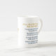 This mug is imprinted with a Bach Solos Suite for Cello. It was purchased as a thank you gift for a professional cellist friend who often performs this work. The cup is made of a high-grade ceramic and is fairly light. The walls are not too thick and it is a small to medium size. It's well finished, has a high-gloss glaze, and looks very elegant. The Bach Solo Suite score on the example I received was clear and had high contrast. Even though the staffs were small, the music was easy to read. The cellist who received this cup immediately knew what the music was as soon as she set eyes on it.