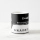 Personalized graduation coffee mugs, change year, name and school. Background colour can be changed too by clicking the "Customize" button, then click "Edit">>Background" and select a colour.