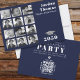 This design features graduate graduation grad photos, and a multi-photo picture collage grid, with a QR code for the website's online URL, social media event page, and Facebook icon. a modern simple minimalist minimal, for high school or college seniors, a basic minimal typography font text, a modern mortarboard mortar board cap,12 twelve photo layout template, a graduation grad party invitations, a grad party photo announcements, with school name class of year