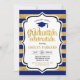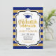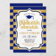 Graduation Party Invitation with Navy Blue Gold Stripes.
