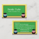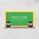 Get noticed with this adorable and colourful business card! It features a pair of cute owls, pink and blue, that are wearing mortarboards and graduation outfits with chalk in their wings standing in front of a green chalk board. The owl is perfect because it symbolises knowledge and wisdom. Reverse page include space for indicating credentials and education details. A fitting business card for elementary and preschool teachers, tutors and anyone in the education and academics related businesses.