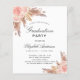 For a modern boho style graduation party. A stylish white background. Decorated with rose gold and pink florals, roses and pampas grass. Personalize and add a name and party details.