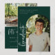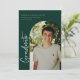 Faire-part/invitation de graduation de photo avec cadre d'arc, scénarisé moderne "diplômé". Caractéristiques, typographie blanche sur les arrière - plans verts de forêt.