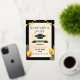 The design is based on solid black colours such as gold or white with high temperatures, with graphic lines, a picture of the graduate, and editorial details.