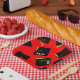 Creative red, black and gold graduation party plates. To personalize edit text to add grad's name and the senior class year.