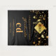 A chic black background. Decorated with golden stars and a modern, abstract faux gold cap, hat, tassel topper with the year inside. Text: Congratulations! and Graduate. Personalize and add a year, monogram initials, name and school name. For both him and her. A banner , party decoration, or photo booth, backdrop for a 20xx (or any year) graduation party.