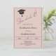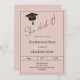 A modern and stylish blush pink neutral invitation for a graduation party. Text: She did it! Decorated with a black graduation cap. Personalize and add a name and the details.