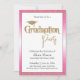 Graduation Party Bright Pink Ombre Gold Confetti Invitation