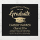 Add a personalized touch to college or high school graduation party decorations with these elegant black and gold faux foil sparkling wine bottle labels. Design features stylish modern typography, handwritten style script calligraphy, and a customizable message reading "Congratulations to our Graduate". Text at the bottom includes class year, school name, and optional lines for degree, beverage type, or other info. All text is simple to customize. Please note that gold is printed colour, not actual metallic foil. These labels make a stylish graduation party drink idea and an elegant addition to the graduate's special day celebration. Cheers!
