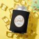 This modern and classy graduation party design can be personalized with your name, school, and class year. The gold and black text and gold circular border is placed on a white background and surrounded by a black edge. The words "Congrats Grad" adorn the design, and the word "Grad" is set in a large gold hand-written script font. The colours of the text, gold trim, and background can be changed in the Edit Menu.