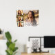 Elegant graduation party poster welcome sign featuring the graduate's photo overlayed with a strip of three smaller square photos and "Graduate" in a modern script and their name and class year in simple typography.