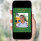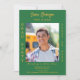 Personalize and add a photo, name, school name, class of, and party details. A forest green background, golden text.