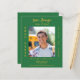 Personalize and add a photo, name, school name, class of, and party details. A forest green background colour, golden text.