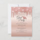 Graduation Party Grad 2022 Rose Gold Glitter Invitation. You can easily customize this by clicking the "Personalize" button. Featuring a modern sparkly glitter drip design and graduate cap with script and popular typography.