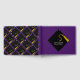 Creative graduation guest book to include words of advice and good luck wishes featuring black and gold cap pattern on purple background. To personalize edit text to add graduate's name, school and senior class year.