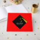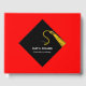 Creative graduation guest book to include words of advice and good luck wishes featuring black and gold cap pattern on red background. To personalize edit text to add graduate's name, school and senior class year.