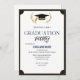 Elegant graduation party invitation with a clean white background, soft gold accents, and a classic graduation cap design. Fully editable template to personalize the name, date, time, location, class year, and RSVP details. Perfect for high school or college graduation celebrations.
