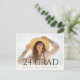 Announce your academic achievement with a sleek graduation invitation postcard. The front features space for a cherished photo, capturing your proud moment, with the words "24 Graduate" elegantly displayed at the bottom. Beneath this, there's room to showcase the graduate's name and school, adding a personal touch. The back of the postcard is thoughtfully designed with room for mailing information and the recipient's address on the right, while the left side neatly presents the party details. This sophisticated and convenient design ensures your guests receive all the essential information in style, making your celebration unforgettable.