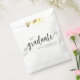 A modern elegant graduation party favour bag. These thank you party favour bags feature a simple black and white theme with an elegant script font. Add the graduates name and high school or college for the perfect personalized graduation party favour bag.
