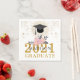 Simple graduation party napkins with floral decorated typography grad cap and gold type on a white napkin. Simple and minimalist typography and grad cap with gold rays.