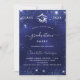 A navy blue background. The blue colour is uneven. Personalize and add a name and party details. The text graduation and the name is written with a modern hand lettered style script.