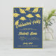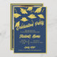 A navy blue and gold customizable invitation for a graduation party for him or her. Personalize the front of these graduation invitations with the graduate's name and your party information. Customize the back of the graduation invitation with a photo of the graduating senior, the graduation year and school. Gold graduation caps and mortarboards tossed in the air on a blue background. Fun graduation party invitation for high school or college graduations.