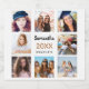 A bottle label for a graduation party, celebrating her or him with a collage of 8 of your photos. Personalize and add a name and year. Black and golden colored letters. Elegant white background color.