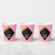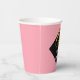 Creative pink, black and gold graduation party cups. Edit text to customize.