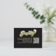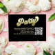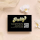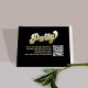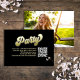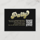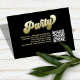 This design features a graduation QR code party invitation insert card, with a modern calligraphy minimalist template, with photo senior picture on the back, a simple invitation insert, a gold gradient typography lettering, details info information details, a grad party information info details, graduate high school or college, party invitation insert card, with a scan scannable QR code details, a gradient gold and black lettering