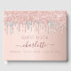 A guestbook for a feminine and glamourous graduation party 2023 (or any year). A faux rose gold background with an elegant rose gold and faux silver glitter drips, paint drip look. The text: The name is written in dark rose gold with a modern hand lettered style script with swashes. With the text: Graduate - class of 20XX. Personalize and add your text on the spine.