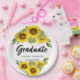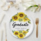 Sunflower graduation custom paper plates featuring hand lettering & calligraphy style display text