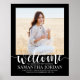 Add a stylish personalized touch to college or high school graduation party decorations with a custom photo 24"x30" welcome poster. The picture and all wording on this downloadable template are simple to customize, and colours are easy to change with the Zazzle design tool. The black and white design features trendy handwritten script calligraphy, chic modern minimalist typography, and one square photo of your choice, such as a senior picture or image from the commencement ceremony. This large printable graduation poster is an elegant way to welcome friends and family to a special day celebration. Congratulations to the graduate!