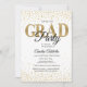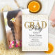 White with gold glitter and black text glitz and glam graduation party invitation personalized with your photo on the back.