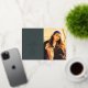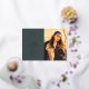 Line art "graduation" foil script at left with your custom text. Photo at right. Dark emerald green background.